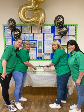 The 55 year celebration was held on Saturday 15th September at Newborough Village Hall. The hall was open for the afternoon for anyone to visit and share memories. There was an abundance of photographs for the past 55 years to bring back a flood of memories for many who attended. Many stories of years gone by were shared. The afternoons activities included the cuttingof the birthday cake specially made for the occasion. Newborough playschool is regularly inspected by ofsted and has a current rating of "Good"
